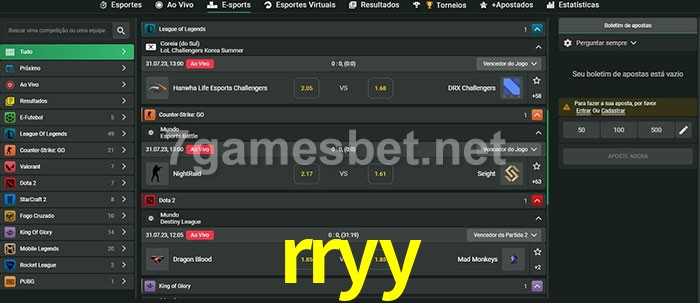 O rryy oferece uma grande seleção de opções de apostas em e-sports com probabilidades competitivas